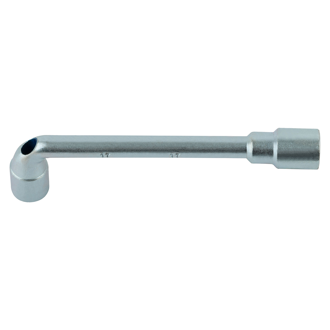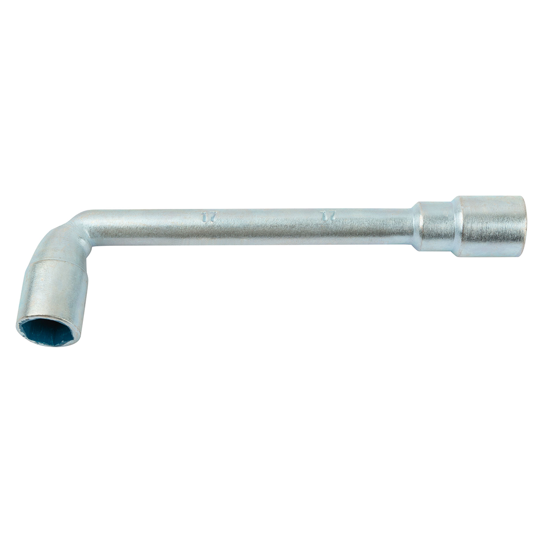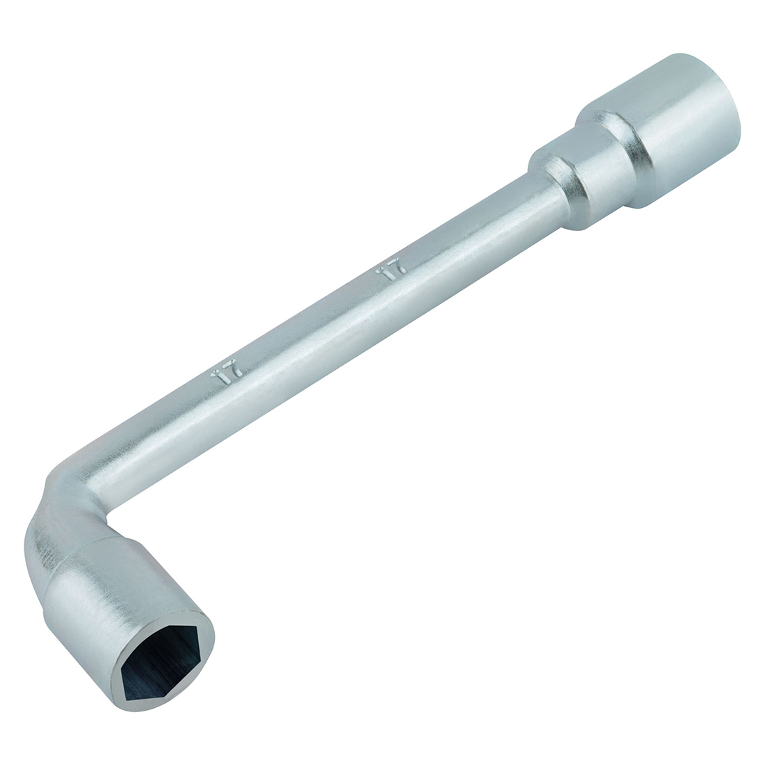 Ключ угловой FIT 17мм подходит для использования в местах с ограниченной доступностью, способен заменить вороток, головку и удлинитель. Защитное хромированное покрытие предотвращает появление коррозии и продлевает срок службы инструмента. Отверстие в ключе позволяет скручивать гайки с длинных шпилек. Материал: инструментальная сталь.