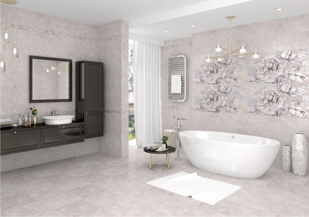 Вам нравятся деликатные, утонченные, лиричные интерьеры? Тогда керамическая плитка Керлайф Delicato подойдет для вашей ванной, прихожей или зоны бассейна идеально. Спокойные оттенки кремового перламутра прекрасно сочетаются с декоративными элементами, на которых «благоухают» роскошные садовые пионы. А классический растительный орнамент бордюров завершает гармоничную картину. Керамическая плитка Керлайф Delicato – нежность пионов и таинственность жемчуга.