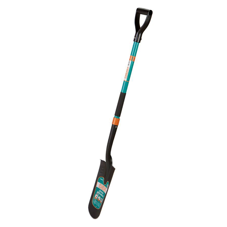 Дренажная лопата 130 см SIBIR 1802 оснащена заточенным лезвием, которое обеспечивает меньшие затраты сил при работе с грунтом любой сложности. Для повышения эффективности имеется удобная D-образная рукоятка на черенке. Рабочая часть защищена антикоррозийным покрытием. Надежный фиберглассовый черенок соединен с рабочим полотном сквозной клепкой и кольцом-зажимом. Толщина стали полотна 1.6 мм.