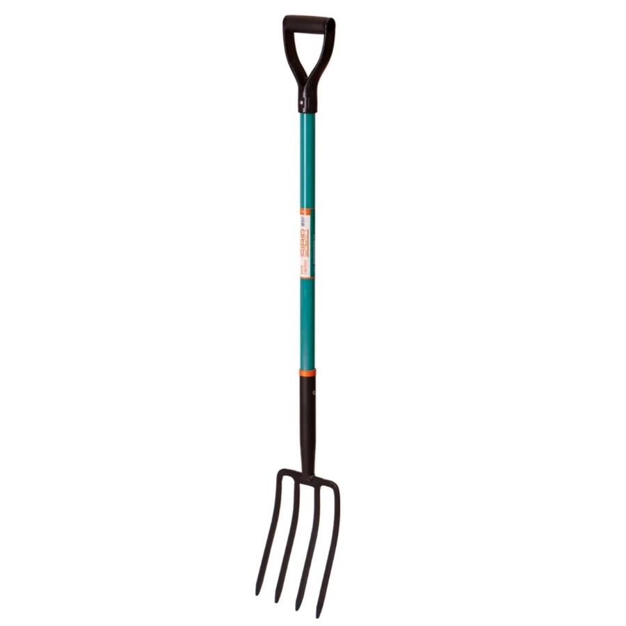 Дополнительная защита тулейки от излома: Усиливающая вставка в месте соединения черенка с вилами предотвращает самый частый вид поломки — излом в самой нагружаемой точке. Эргономичная D-образная рукоятка обеспечивает надежный и комфортный хват. Рукоятка предотвращает соскальзывание ладони.