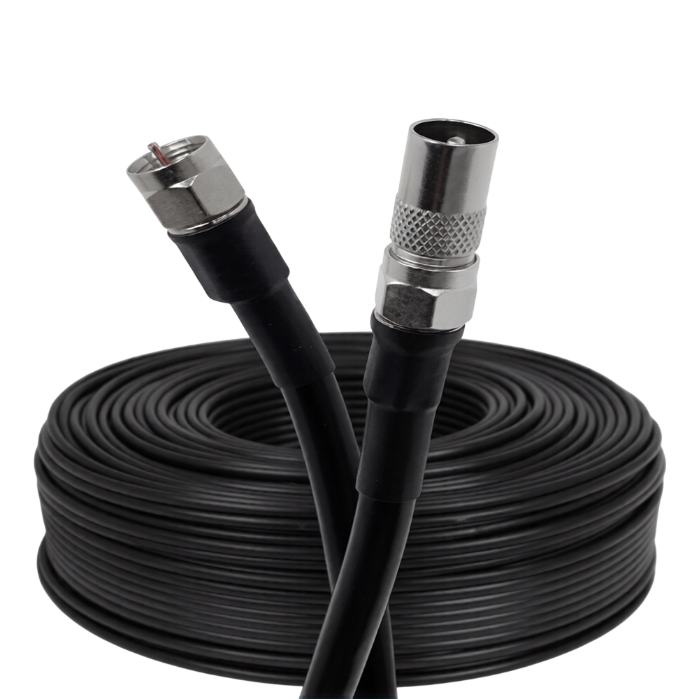 Коаксиальный кабель RG-6 (F-разъемы+TV-переходник) 10 метров (черный) для улицы — готовое решение для подключения систем телевидения, видеокамер наружного и внутреннего наблюдения, внутренних и межблочных соединений общепромышленных и бытовых радиотехнических устройств. Кабель изготовлен по технологии ССА (биметалл «медь-алюминий»). Устойчивая к ультрафиолету черная оболочка позволяет использовать провод вне помещений.