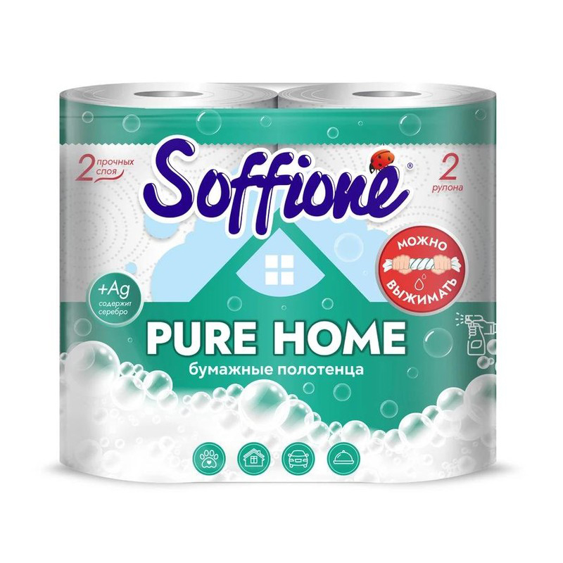 Бумажные полотенца SOFFIONE Pure Home имеют два слоя, благодаря чему они обладают высокой прочностью и впитываемостью. Они отлично подходят для вытирания рук, уборки и любых других задач, связанных с поддержанием чистоты.