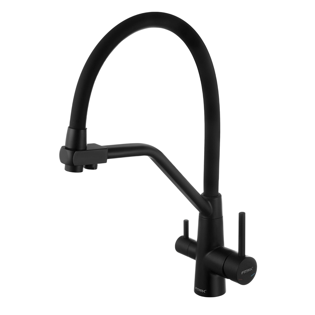 Смеситель для кухонной мойки под фильтр питьевой воды Fmark FS0662-H01 выполнен из качественной нержавеющей стали марки 304. Дизайн смесителя выполнен в черном цвете с черным гибким изливом. Смеситель отлично будет смотреться в любом интерьере от минималистичного хай-тек до строгой классики. Гибкий излив обеспечивает легкий доступ к раковине, позволяя без труда направлять поток воды в нужную сторону.