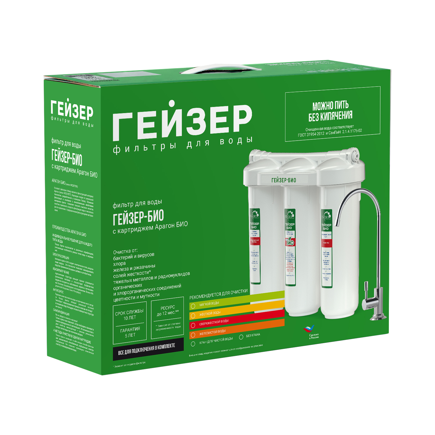 В фильтре применены инновационные технологии очистки воды с использованием картриджа Дисраптор, от американской компании Ahlstrom Filtration и картриджа Арагон Био, что позволяет получить непревзойденную степень и ресурс очистки от вирусов, бактерий и химических примесей.