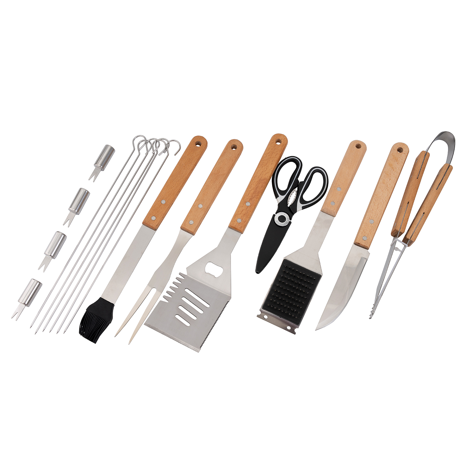 Превратите каждое приготовление на огне в кулинарный шедевр! Этот функциональный набор содержит все необходимые инструменты для комфортной работы с мясом, овощами и рыбой. Компактный размер и продуманная комплектация делают его идеальным спутником как для загородного отдыха, так и для использования на домашней террасе.