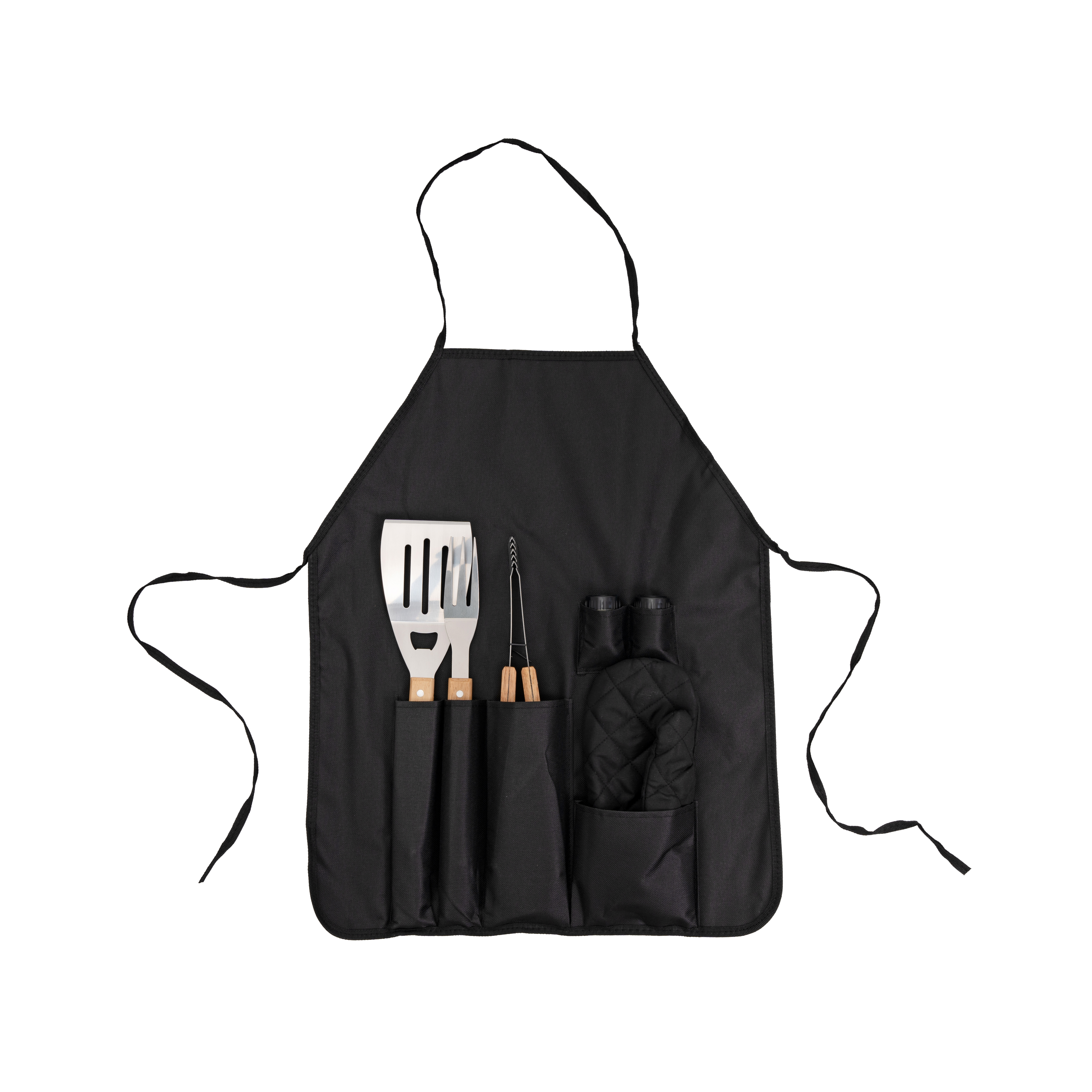 Этот набор — практичное и стильное решение для тех, кто ценит комфорт во время готовки на огне. Комплект объединяет в себе все базовые инструменты, превращая процесс приготовления шашлыка или стейков в профессиональное кулинарное шоу. Набор для барбекю 43х10х5см: фартук, варежка, щипцы, вилка, лопатка, перечница, солонка