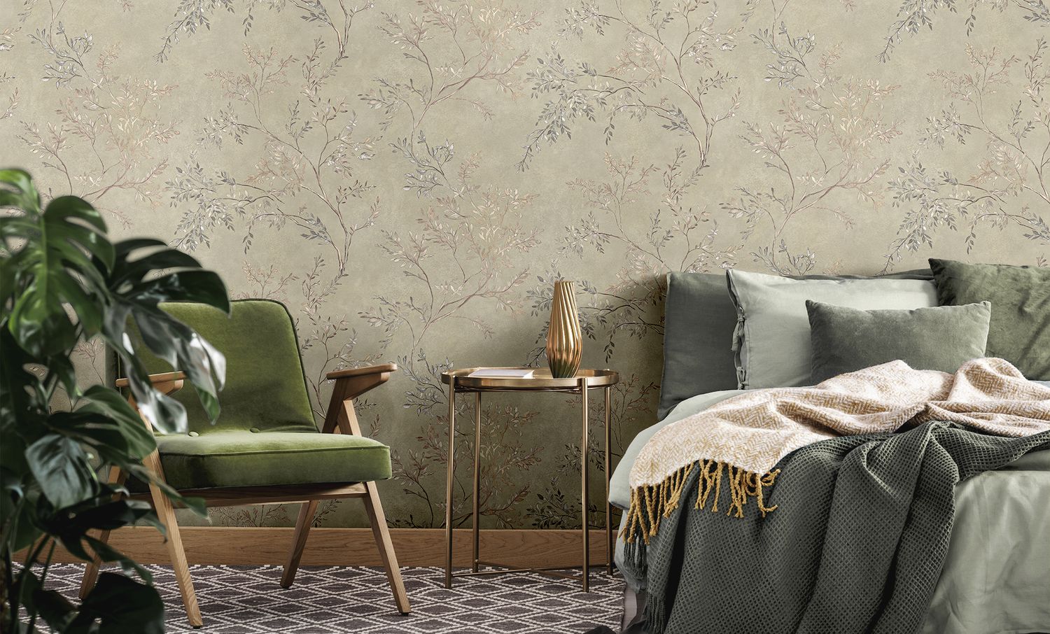 Новая коллекция Carmen ТМ Ateliero — это воплощение утончённой элегантности. Изящные ветви с тонкими листочками плавно переплетаются на мягкой текстурной поверхности, создавая ощущение лёгкости и природного равновесия. На свету рисунок оживает — элементы блестят, переливаются, будто покрытые росой. Световые блики и перламутровые акценты придают обоям глубину и живость.