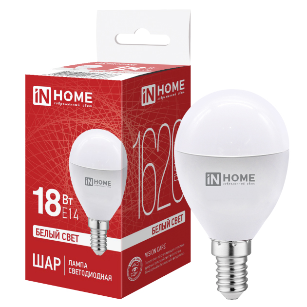 Лампа светодиодная IN HOME LED-ШАР-VC 18W-E14-4000K
