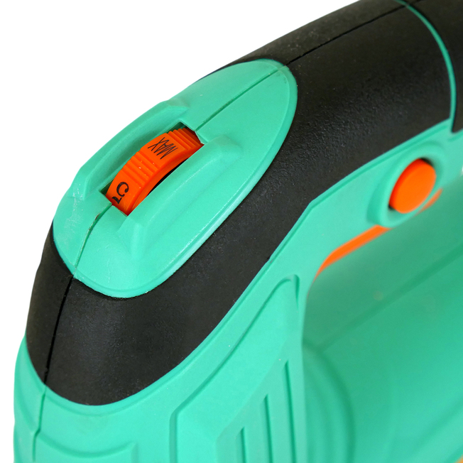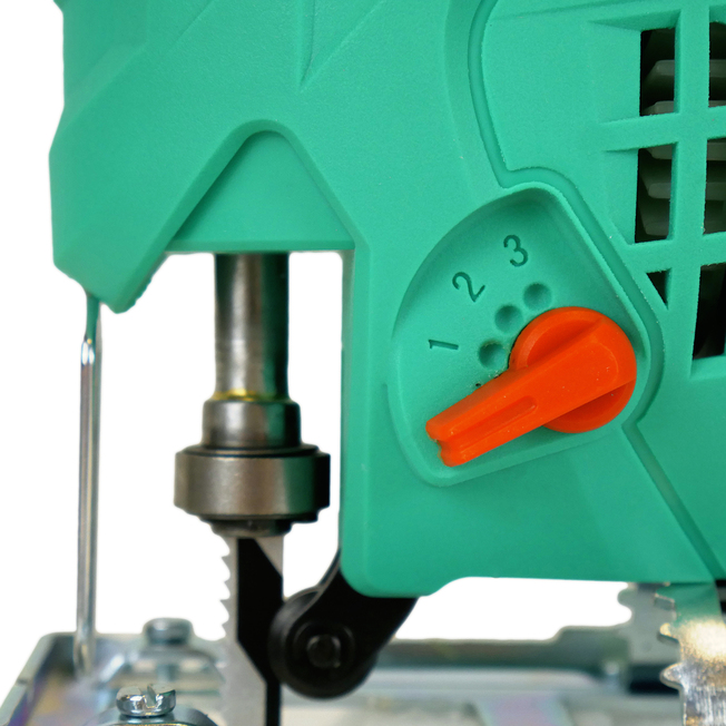 Возможность точной настройки инструмента применимо к конкретному материалу обеспечивают электронная система регулировки ходов штока (1500-3000 ход/мин), а также функция маятникового хода с четырьмя режимами – с помощью специального переключателя пользователь выбирает оптимальный режим работы с упором на максимальную производительность, либо максимальное качество реза с наименьшим количеством сколов.