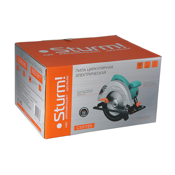 Sturm CS51185 – циркулярная пила бытового назначения под рабочий диаметр пильного диска 185 мм. Модель оснащена мощным 1600 Вт двигателем, развивающим скорость вращения 5500 об/мин и уверенно справляется с пропилами глубиной до 59 мм.