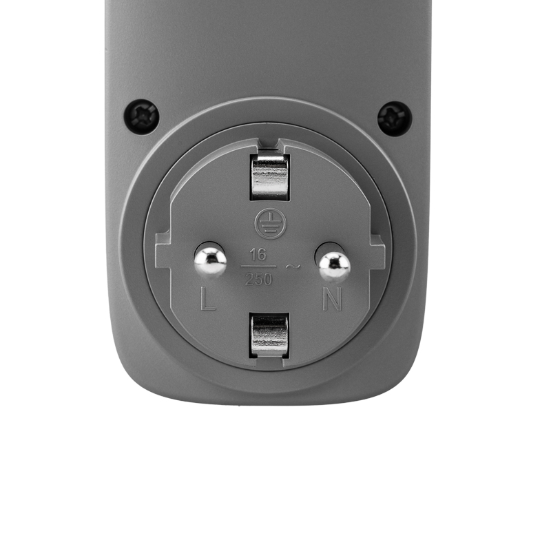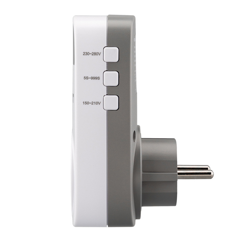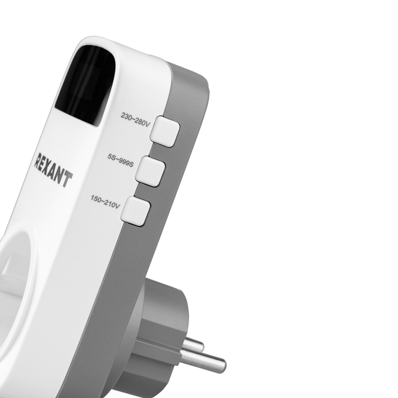 Реле программируется с помощью кнопок, которые находятся в боковой части корпуса. Настройки сохраняются в памяти устройства даже после отключения электроэнергии. Все необходимые параметры отображаются на LED-дисплее. Прочный корпус из негорючего пластика и розетка с защитными шторками обеспечивают высокий уровень электробезопасности.