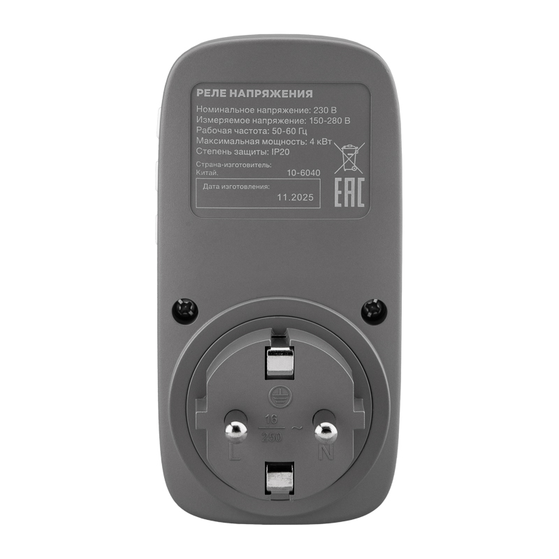 Реле напряжения предназначено для защиты подключенных к нему бытовых электроприборов от скачков напряжения и помех в сети. Устройство автоматически отключает питание при выходе сетевого напряжения за заданные пределы и включает его после нормализации параметров сети. Функция задержки включения предотвращает повреждение оборудования вследствие повторных сбоев.
