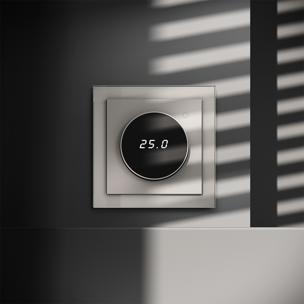 В течение 15 минут после нагрева терморегулятор переходит в интеллектуальный «спящий режим», уменьшая яркость подсветки цифр и сокращая энергопотребление. Регулировка осуществляется вращением панели управления.
