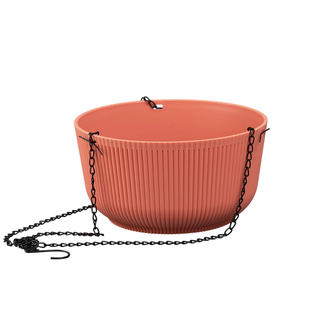 Подвесное кашпо станет отличным решением для декорирования окна, балкона, террасы или беседки. Изделие выполнено из высококачественного пластика, который не выгорает на солнце, устойчив к атмосферным осадкам и не имеет постороннего запаха. Наличие вкладного решетчатого поддона и дренажного отверстия исключает перелив и застой влаги. Для подвеса предусмотрена тройная металлическая цепочка с надежным крючком.