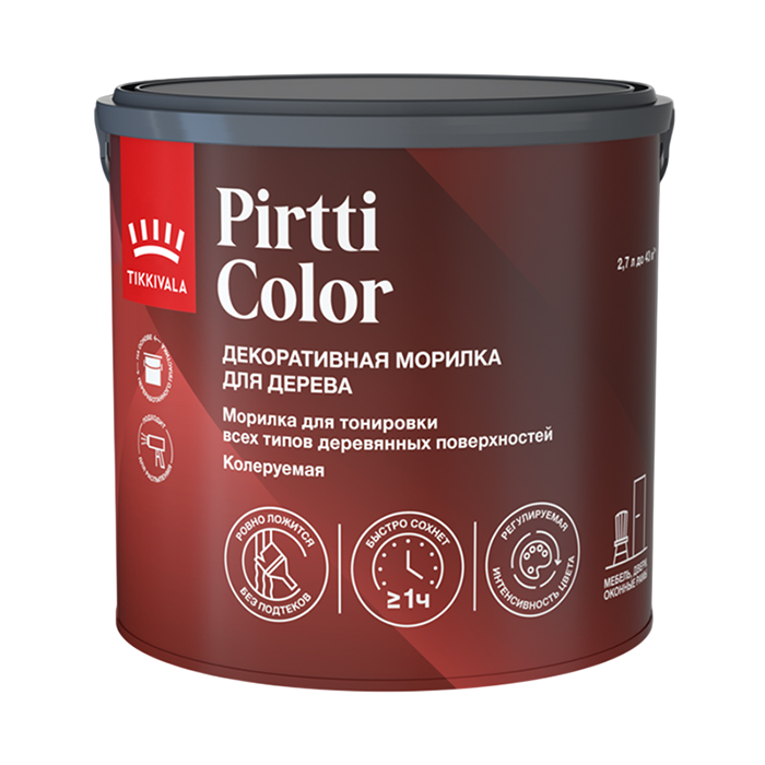 Pirtti Color прекрасно подходит для обработки различных деревянных элементов интерьера, включая стены, потолки, полы, двери, мебель и другие вертикальные и горизонтальные поверхности. Морилка легко наносится и быстро высыхает, позволяя преобразить внешний вид ваших деревянных изделий в кратчайшие сроки.