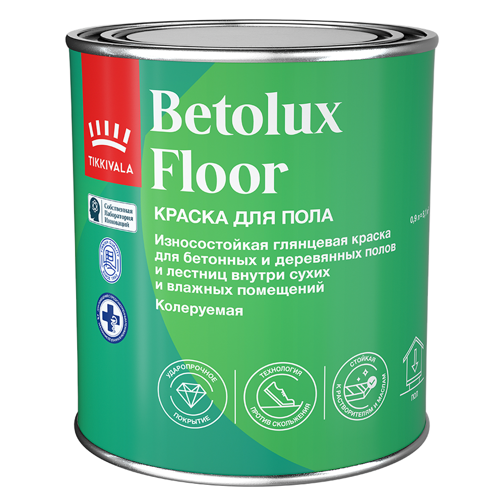 Tikkivala Betolux Floor - износостойкое глянцевое покрытие для бетонных и деревянных полов и лестниц внутри сухих и влажных помещений. Предназначена для окраски бетонных и деревянных полов внутренних помещений, включая бетонные полы во влажных помещениях. Можно применять для ремонтной окраски полов, ранее окрашенных алкидными или эпоксидными красками или лаками.