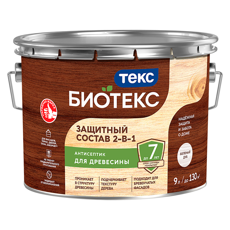 Защитный состав BIOTEKS 2в1 беленый дуб 9л