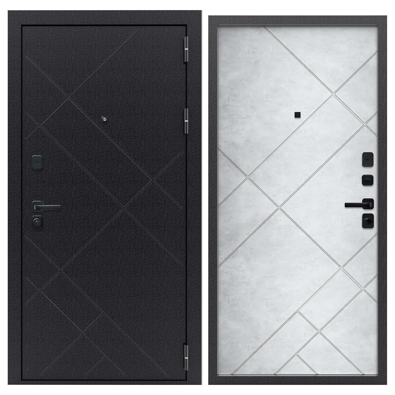 Дверь стальная FLYDOORS Аркан Призма R 2050х960мм букле чёрный/бетон снежный