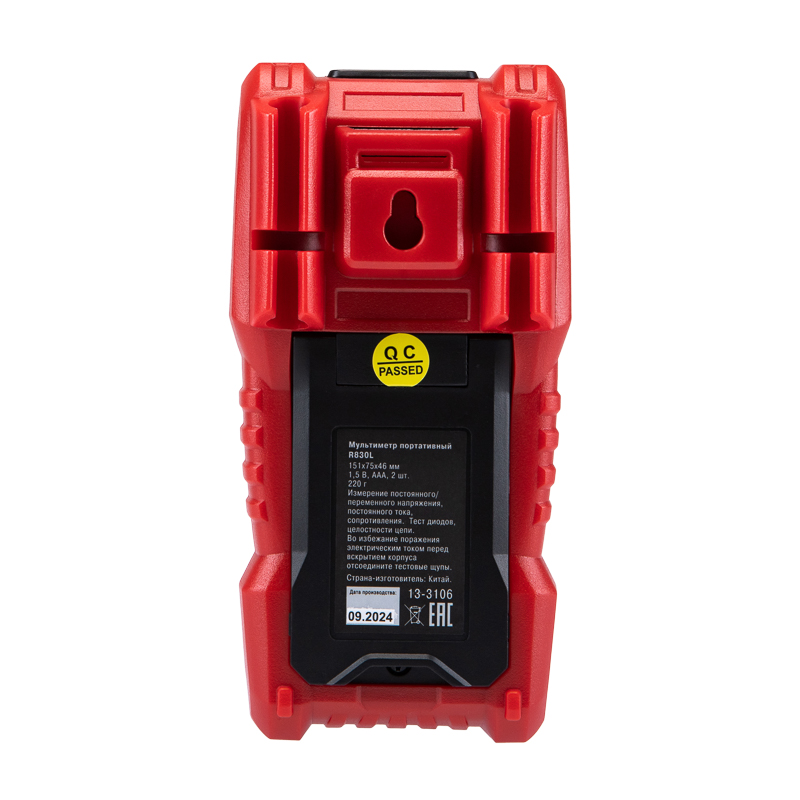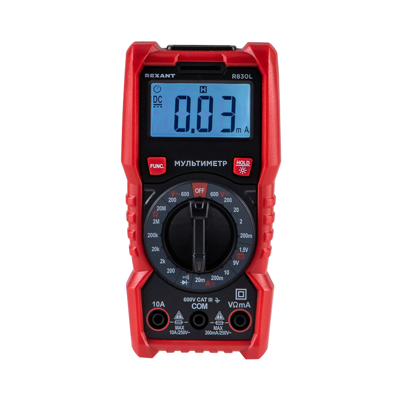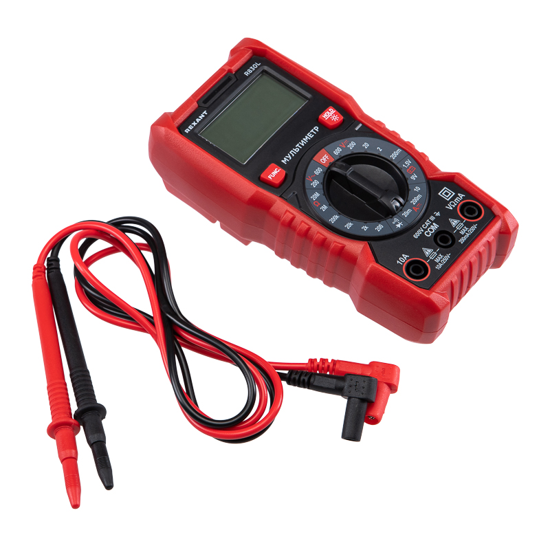 Портативный цифровой мультиметр R830L REXANT представляет собой современное устройство для точных измерений. Имеет ручной выбор диапазонов измерений. Предусмотрена функция удержания данных на дисплее DATA HOLD, которая позволяет запомнить данные, если измерение проводится в труднодоступном месте.