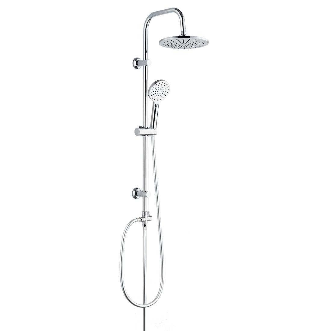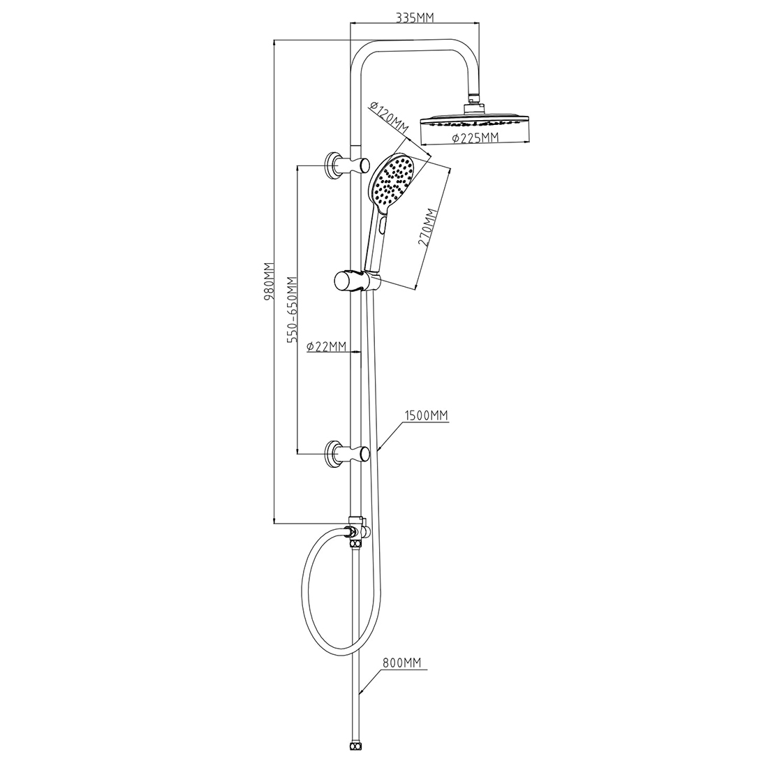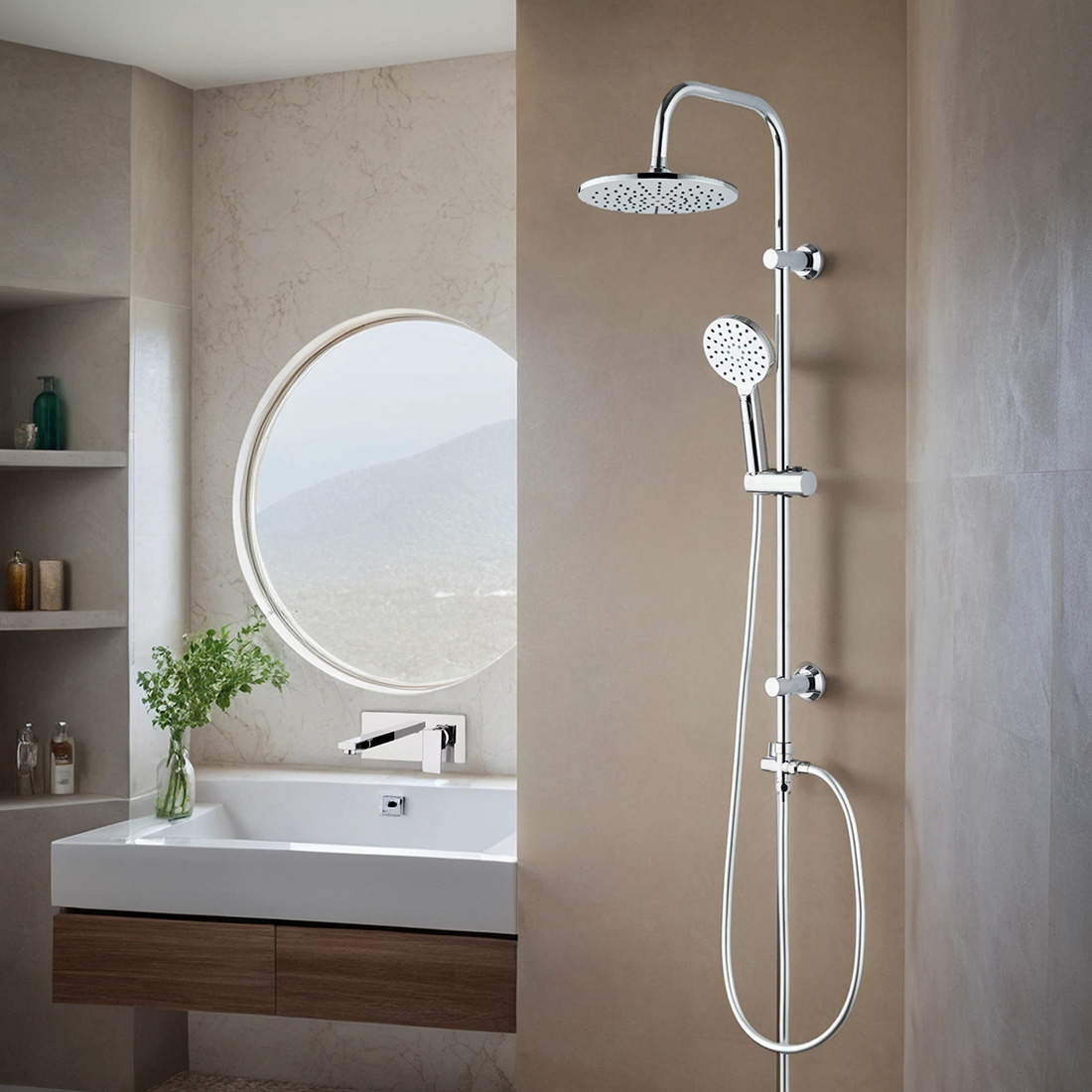 Стильный душевой гарнитур (без смесителя) в хромированном исполнении — это современное решение для вашей ванной комнаты. Комплект включает стойку, верхний душ диаметром 225 мм из прочного ABS-пластика с системой легкой очистки, а также ручную лейку 120 мм с тремя режимами и удобным рычажным переключателем. Металлический шланг длиной 1,5 м обеспечивает надежность и долговечность. Удобство использования дополняет держатель с трещоточным механизмом и кнопочной фиксацией, позволяющий надежно закрепить лейку в любом положении.