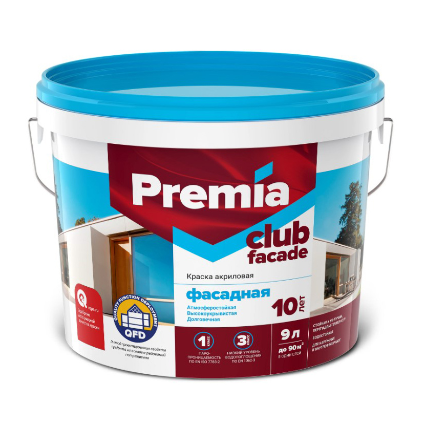 Экологичная акриловая фасадная краска PREMIA CLUB предназначена для окраски фасадов зданий, открытых помещений под навесом (балкон, лоджия, веранда), а так же для работ внутри жилых, общественных, производственных помещений с постоянным и временным пребываем людей, зданий типа А, Б, В. Образует прочное, долговечное «дышащее» покрытие, обладающее высокой устойчивостью к атмосферным воздействиям (осадки, солнечное излучение, перепады температур), в том числе в условиях северных широт.