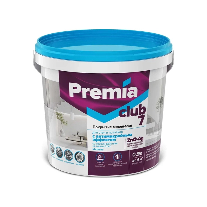 Покрытие ЯРКРАСКИ Premia Club 7 С антимикробным эффектом база А 0,9л