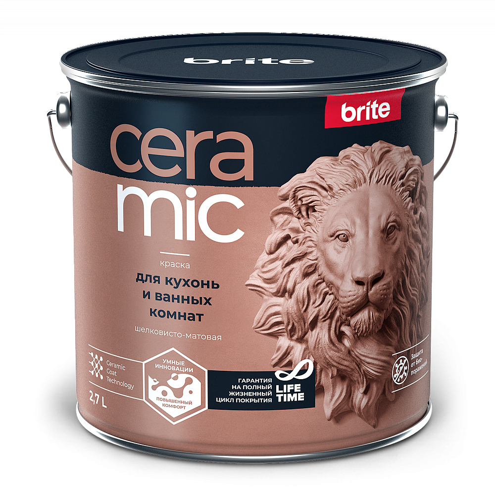 Краска BRITE® CERAMIC для кухонь и ванных комнат отличное решение для защиты стен от загрязнений и создания высококачественного декоративного покрытия. Специально разработанная рецептура обеспечивает эстетичный вид интерьеров и легкость поддержания их в чистоте.