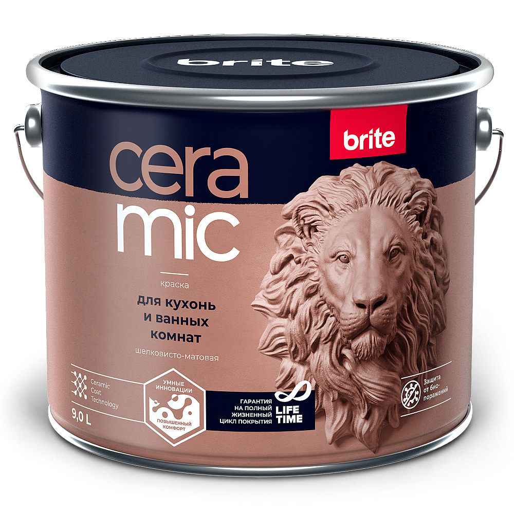 Краска BRITE Ceramic Для кухонь и ванных комнат база С 9л