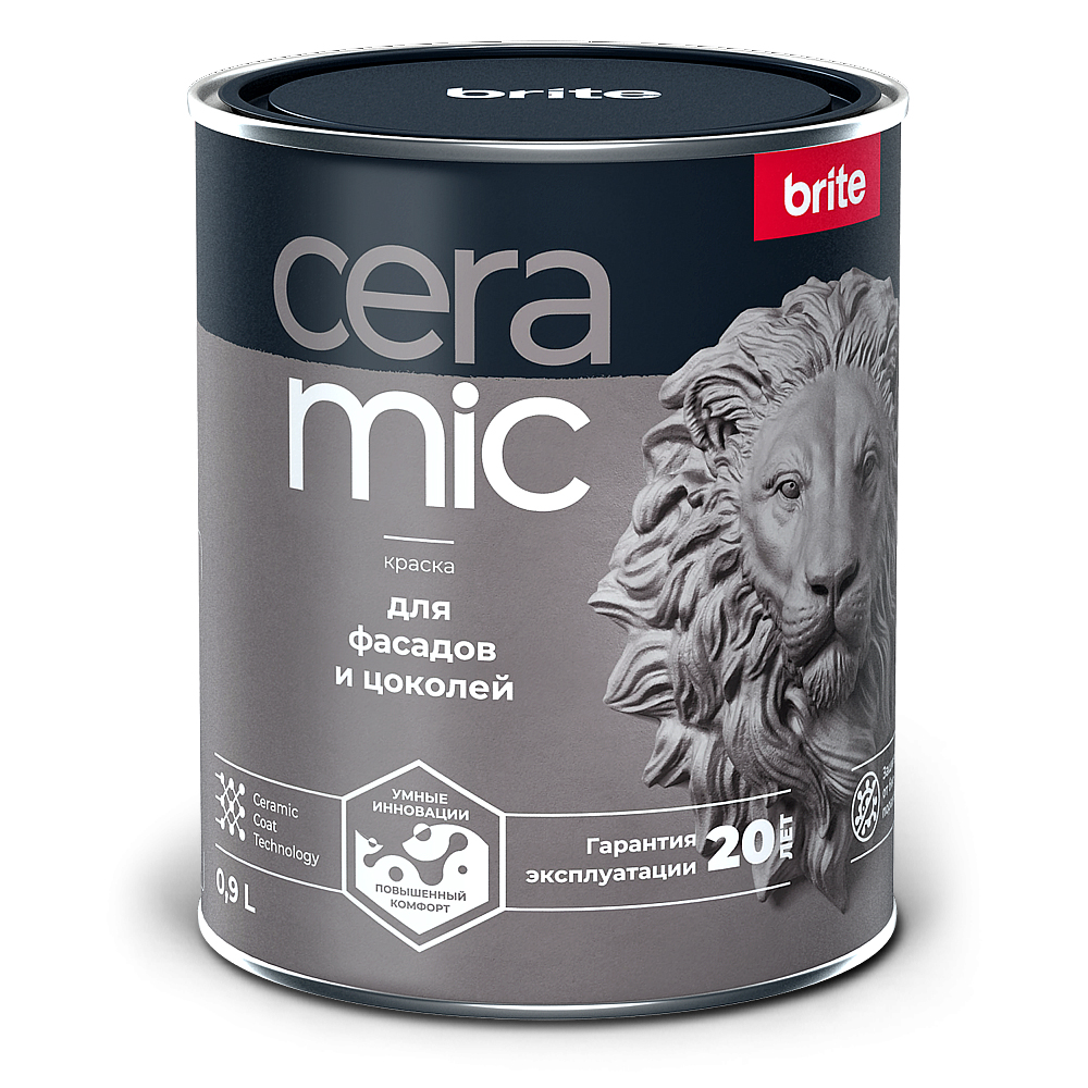 Краска BRITE Ceramic Для фасадов и цоколей база А 0,9л
