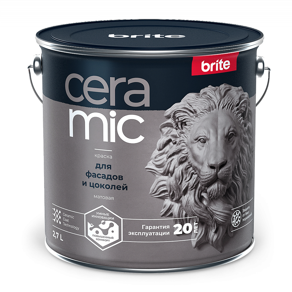 Краска BRITE Ceramic Для фасадов и цоколей база С 2,7л