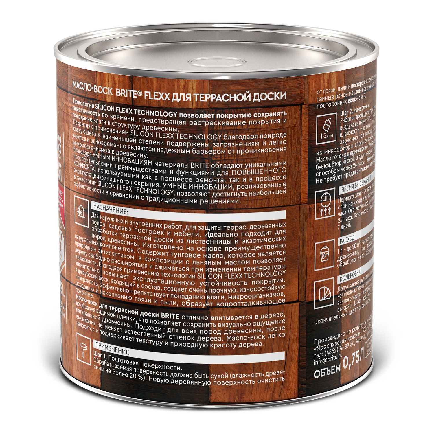 Масло-воск BRITE Flexx Для террасной доски 0,75л