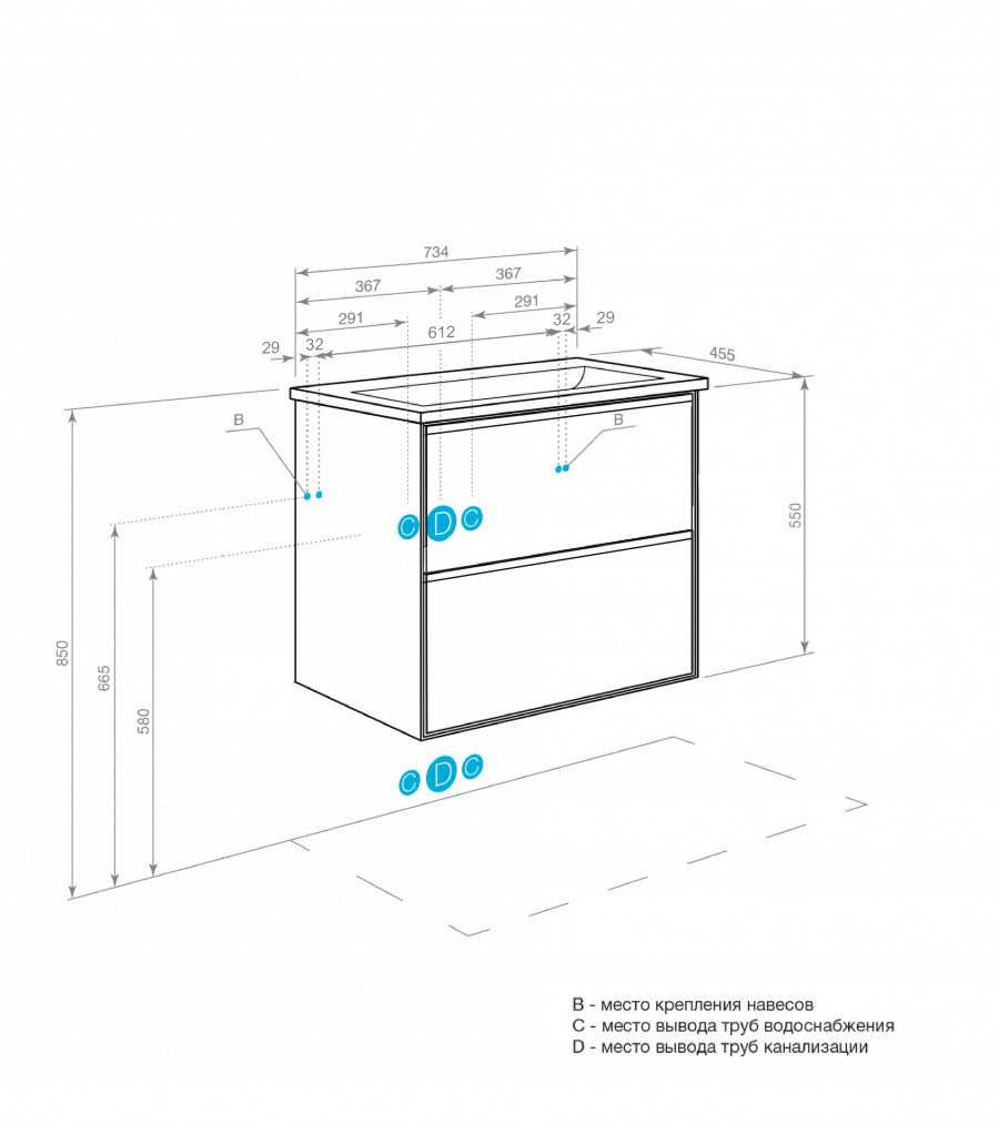 Тумба Люмин дополнена раковиной “Элина”, которая отличается вместительной чашей и изящными бортами.