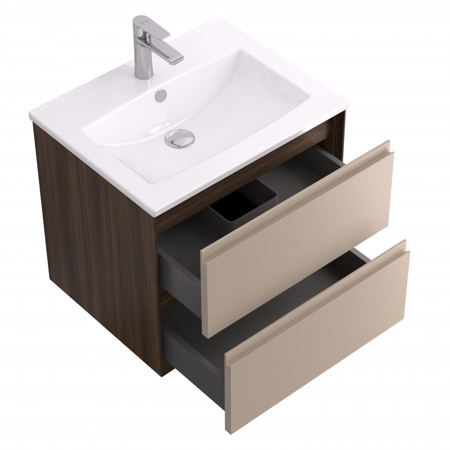 Тумба-умывальник AQUATON Люмин 60 орех франклин/капучино + раковина Элина