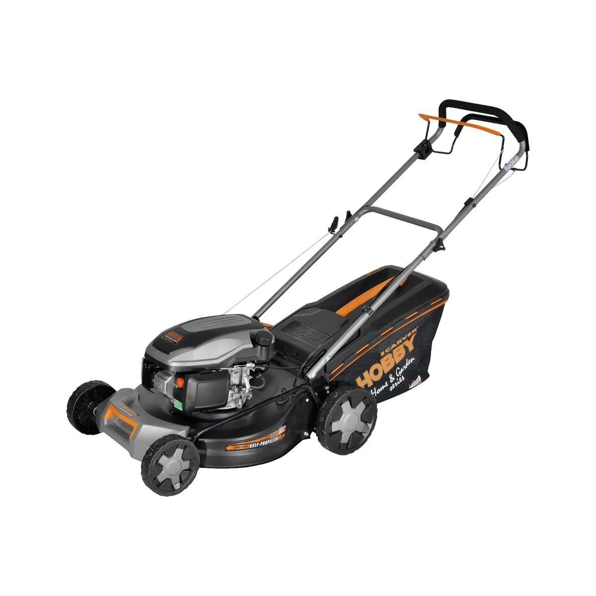 Carver LMG-2951DM Hobby оснащена топливным баком емкостью 1 литр. Четыре маневренных колеса и складная рукоятка с регулировкой длины гарантируют удобное перемещение газонокосилки. Среди других особенностей газонокосилки отмечаются индикатор степени наполнения пылесборника и система самоочистки.