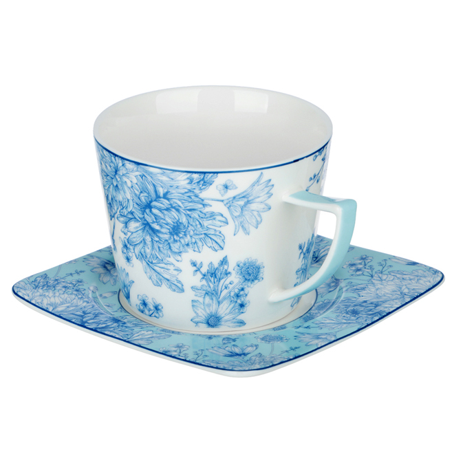 Чайный набор из 2-х предметов, объем чашки 250 мл, MILLIMI «София» превратит чаепитие в маленький праздник и поможет создать неповторимую атмосферу уюта и умиротворения в гостиной или на кухне. Оригинальная квадратная форма блюдца со скругленными краями смотрится самобытно и образует вместе с чашкой гармоничную композицию, которая эстетично смотрится на столе. Посуда с нежным цветочным принтом в сдержанных синих и голубых тонах элегантно дополняет сервировку и прекрасно комбинируется с белой или цветной посудой. Высококачественный фарфор обладает повышенной прочностью, устойчив к образованию царапин и сколов. Чайная пара станет прекрасным решением для подарка на любой праздник.