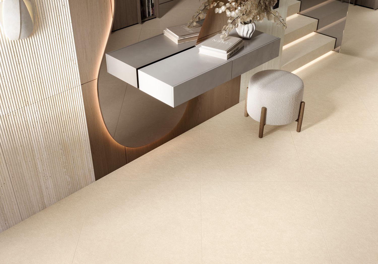 Nevel — это не просто плитка, это холст для воплощения ваших дизайнерских идей. Нейтральная палитра и приглушенная фактура позволяют использовать ее в самых разных интерьерах, от минималистичных лофтов до современных эко-пространств. Особенно гармонично Nevel вписывается в эстетику ваби-саби, подчеркивая красоту несовершенства, простоту и связь с природой.