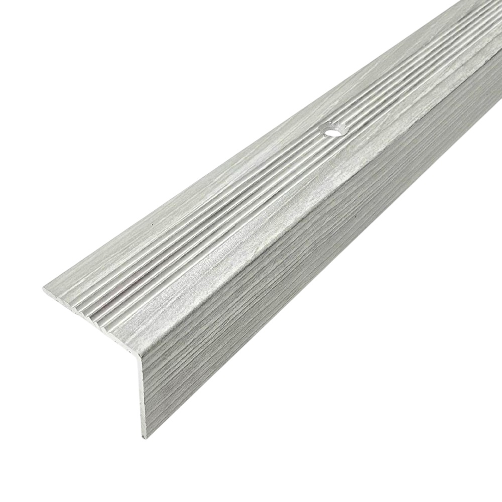 Угловой профиль с открытым креплением используется в качестве накладки на ступени. Он позволяет скрывать щели, неровности среза и другие дефекты, а также открывает широкие возможности для реализации дизайнерских решений. Применение углового порожка для ступеней помогает маскировать компенсационные швы при изготовлении лестниц. С его помощью можно оформлять переходы между разными уровнями — это может потребоваться при монтаже дощатых и паркетных полов, а также при соединении напольных покрытий.