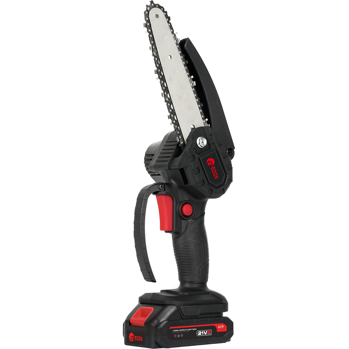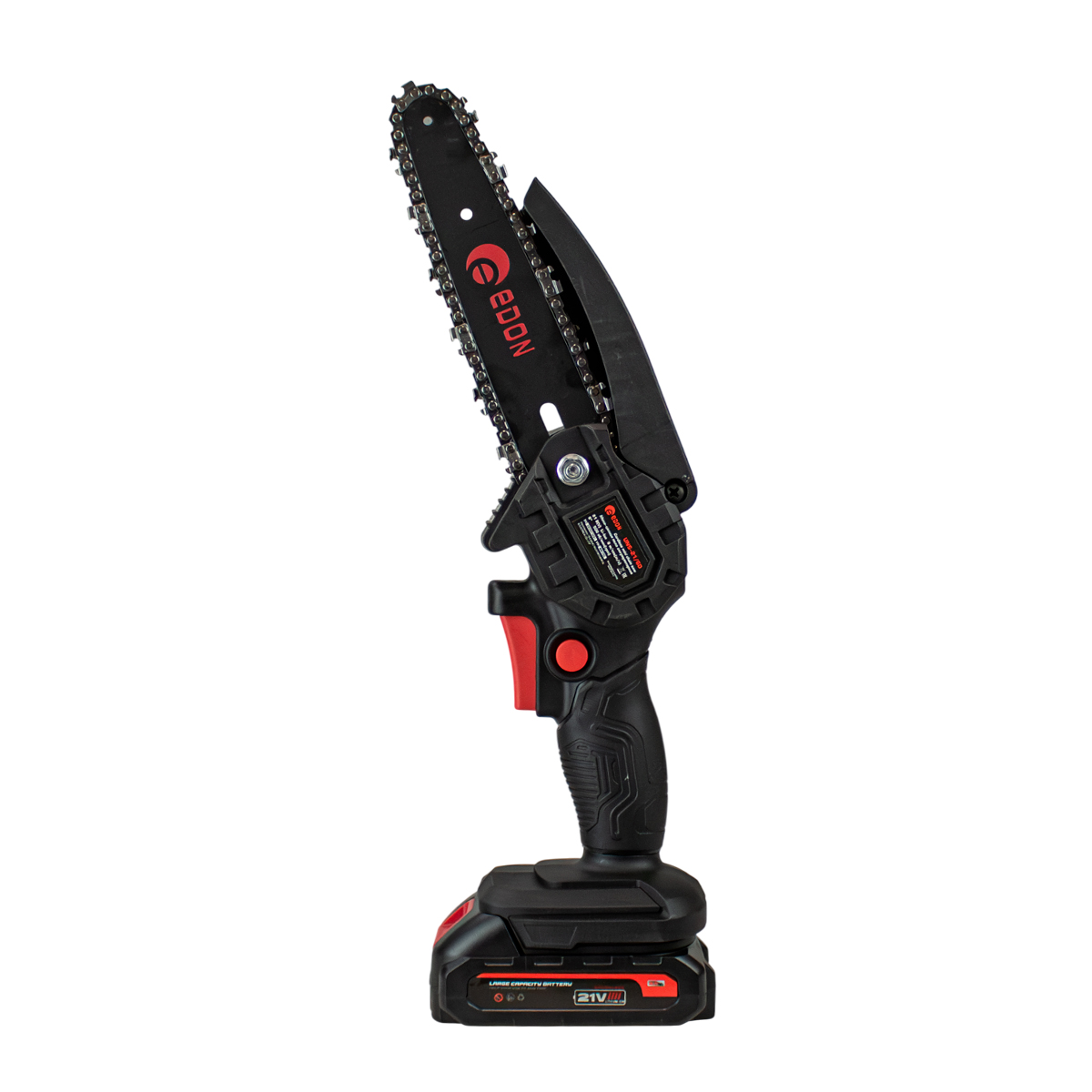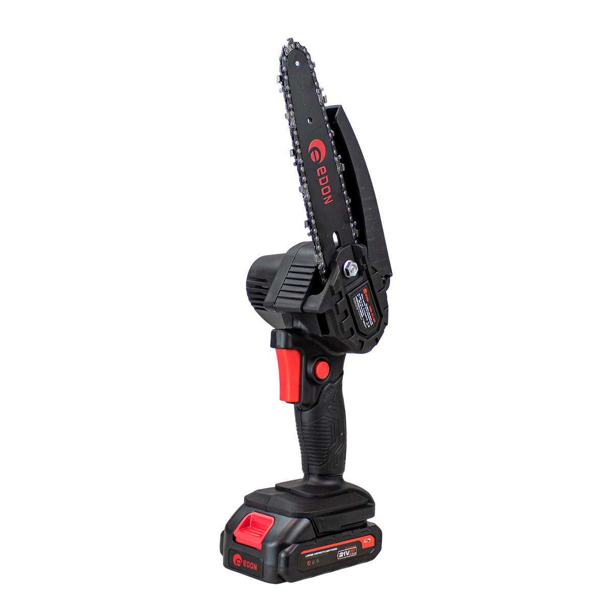 Мини-аккумуляторная цепная пила EDON UNS-21/6D предназначена для распила дерева, фанеры и ДСП. Инструмент оснащён эффективным бесщёточным двигателем, который обеспечивает не просто автономность, а повышенный ресурс работы, высокий КПД и пониженный уровень шума.