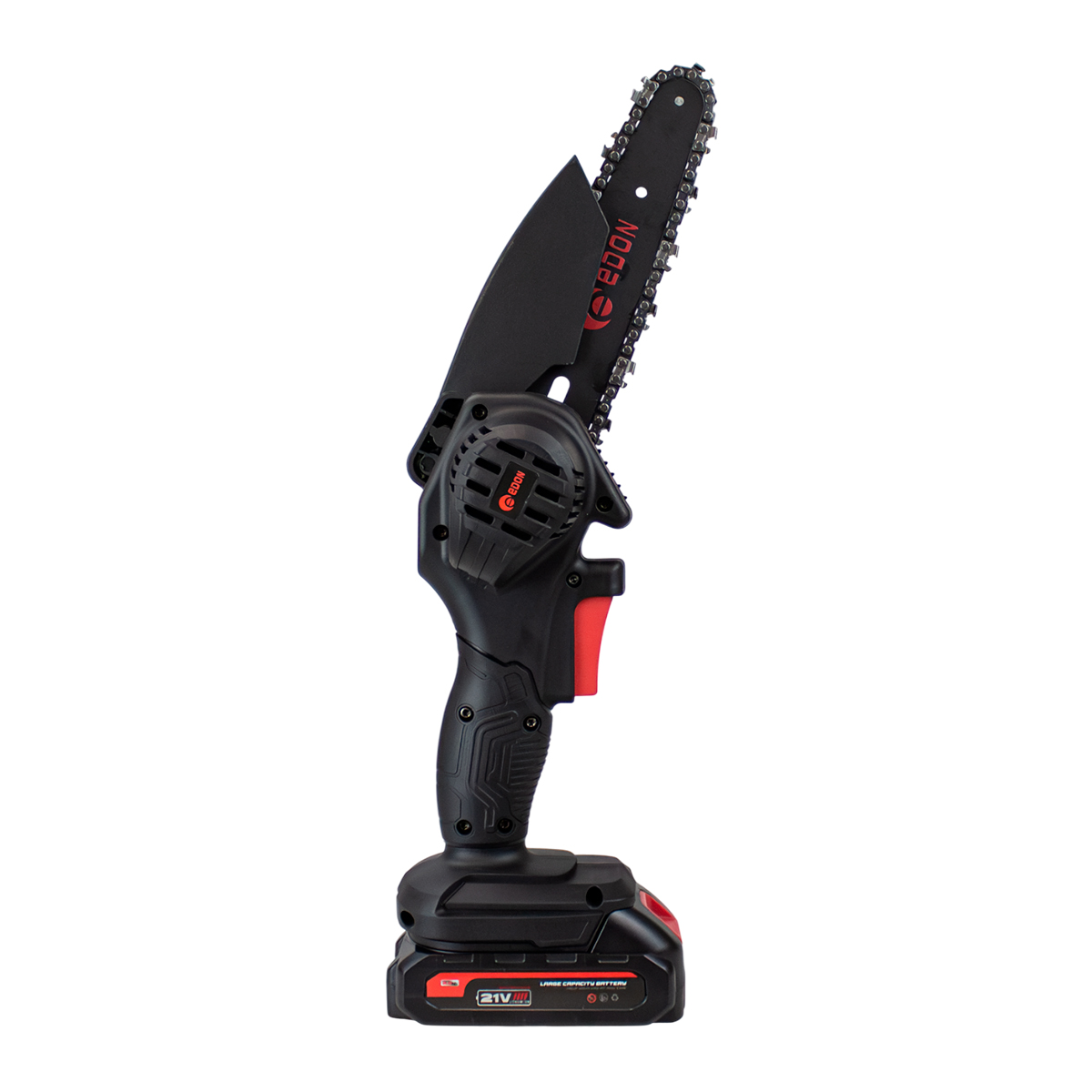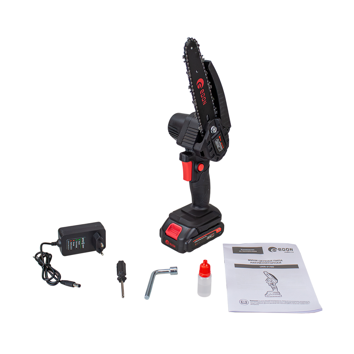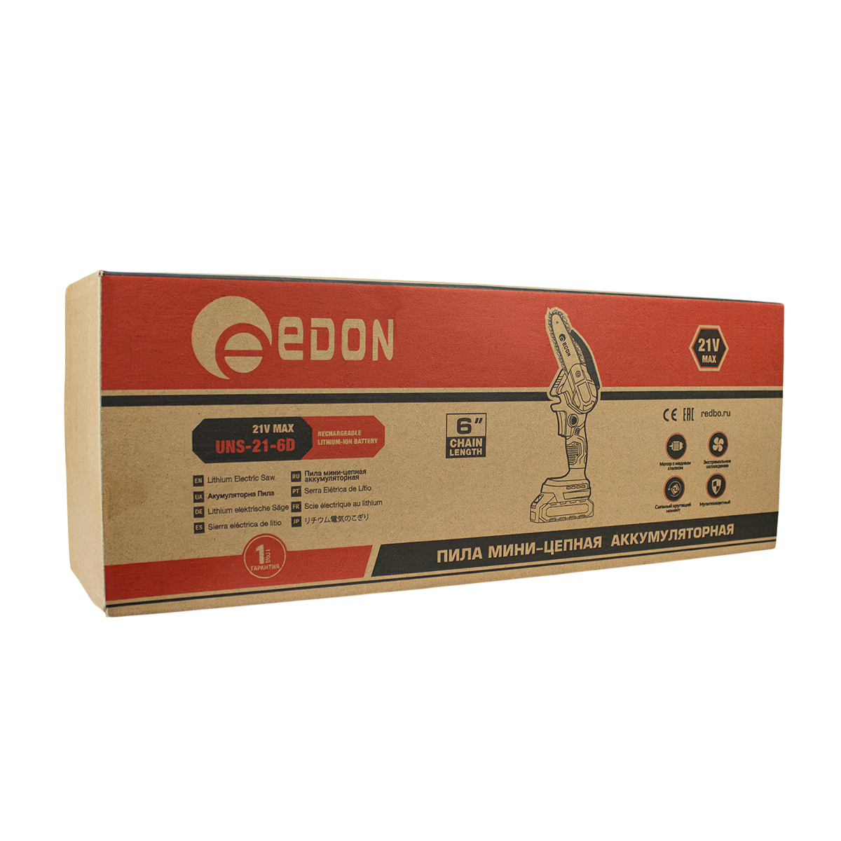 Мини-аккумуляторная цепная пила EDON UNS-21/6D предназначена для распила дерева, фанеры и ДСП. Инструмент оснащён эффективным бесщёточным двигателем, который обеспечивает не просто автономность, а повышенный ресурс работы, высокий КПД и пониженный уровень шума.