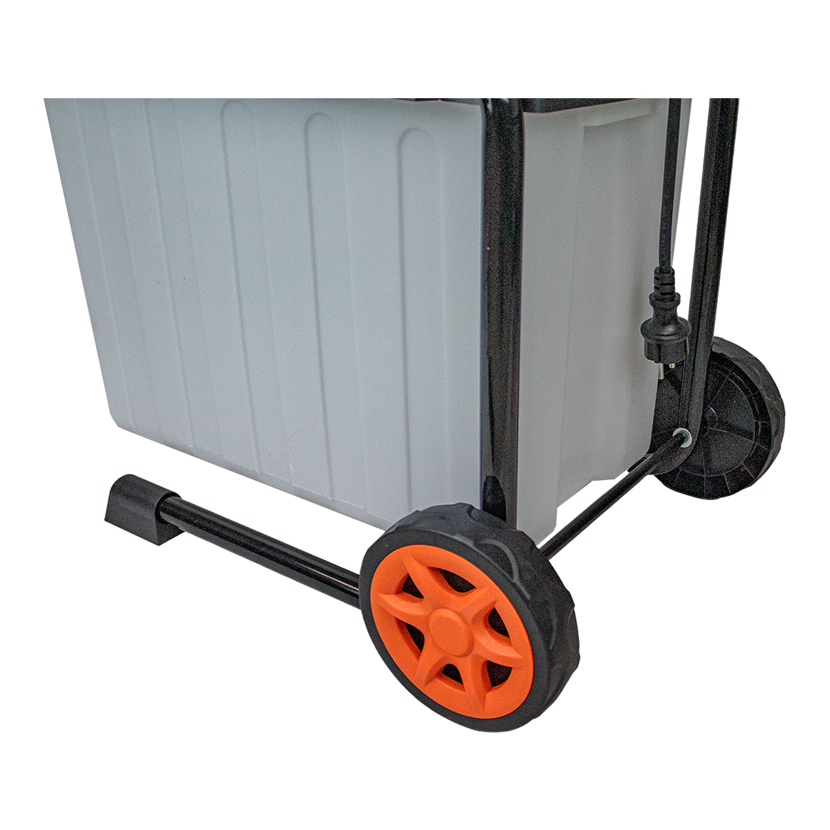 Электрический садовый измельчитель применяется для переработки органических садовых отходов — материалов биологического происхождения (веток, листвы, увядших цветов и аналогичных). Рукоятка и два колеса обеспечивают удобство перемещения агрегата по участку. Благодаря работе от электричества, измельчитель отличается экологичностью и простотой использования.