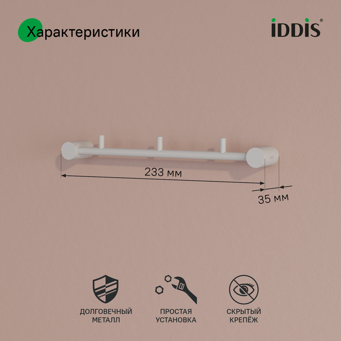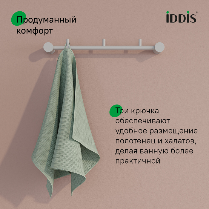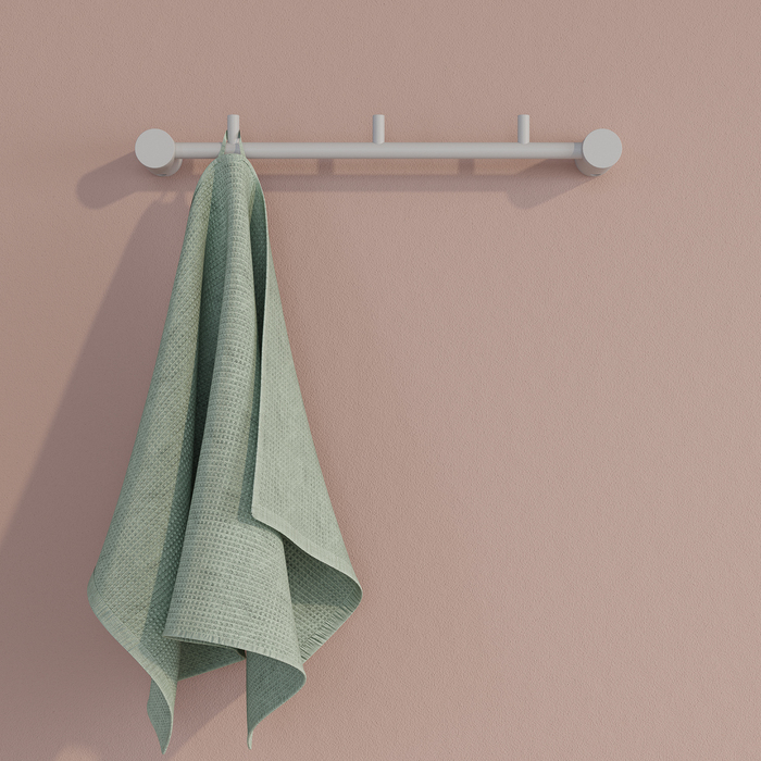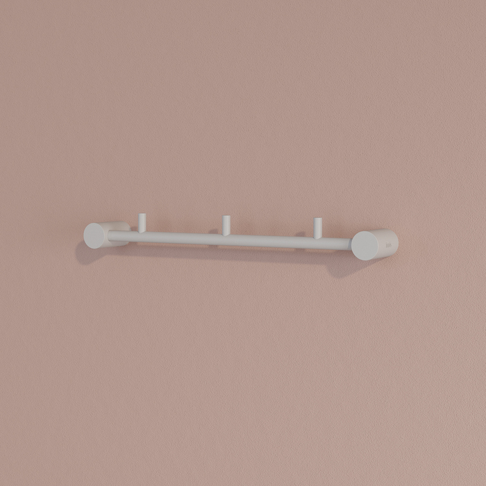 Планка с тремя крючками Petite в белом матовом цвете позволит с комфортом разместить несколько банных полотенец и халатов, дополнив места для хранения в ванной. Основной материал – нержавеющая сталь, что позволяет эксплуатировать аксессуары во влажном помещении ванной и даже в жёсткой воде на протяжении длительного времени. Повышенная стойкость к бытовой химии и механическим повреждениям благодаря надёжному PVD-покрытию.