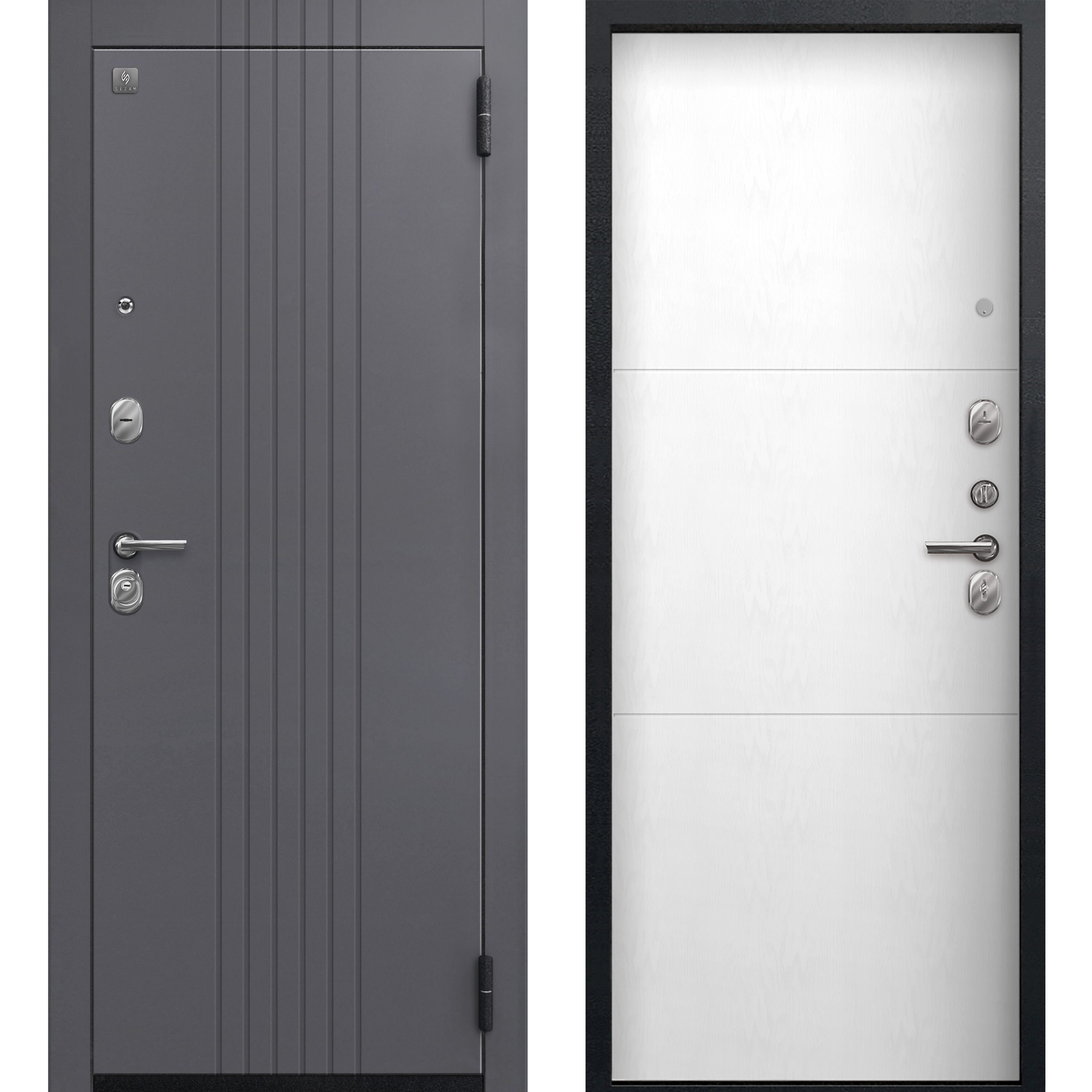 Дверь стальная SEZAM А-12 R 2050х960мм муар черный /кашемир графит, софт ясень белый