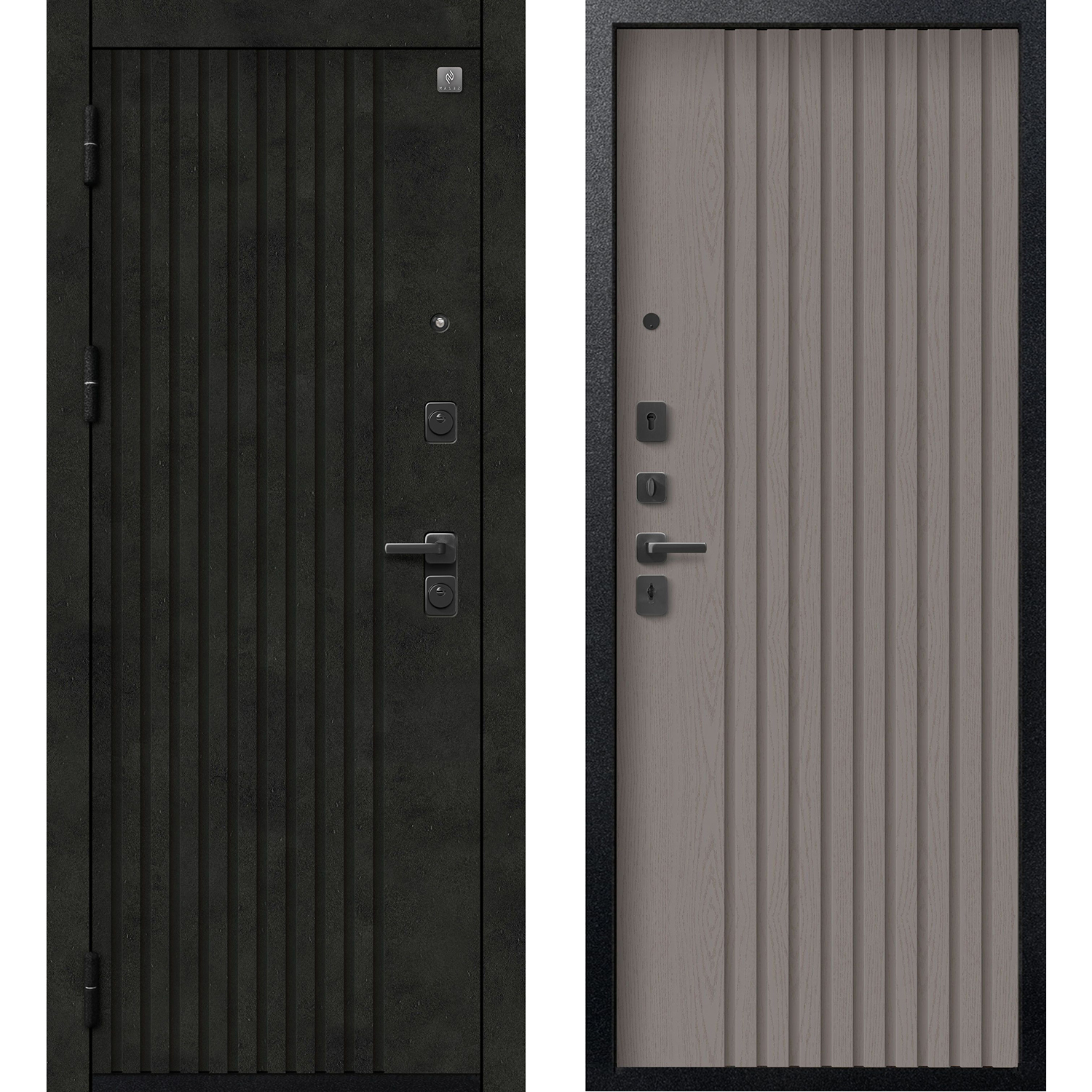 Дверь стальная SEZAM В(V)-15 L 2050х960мм муар черный/бетон темный, софт ясень грей