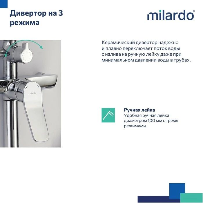 - оптимальная толщина никель-хромового покрытия защищает смесители и душевые аксессуары Milardo от образования трещин и сколов, продлевая срок их службы