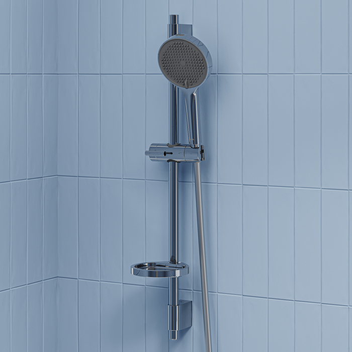 Регулирование высоты держателя происходит легко и плавно даже одной рукой. Хромированное покрытие устойчиво к коррозии, появлению сколов и потускнению (при должном уходе). На протяжении многих лет душевой гарнитур будет выглядеть как новый.