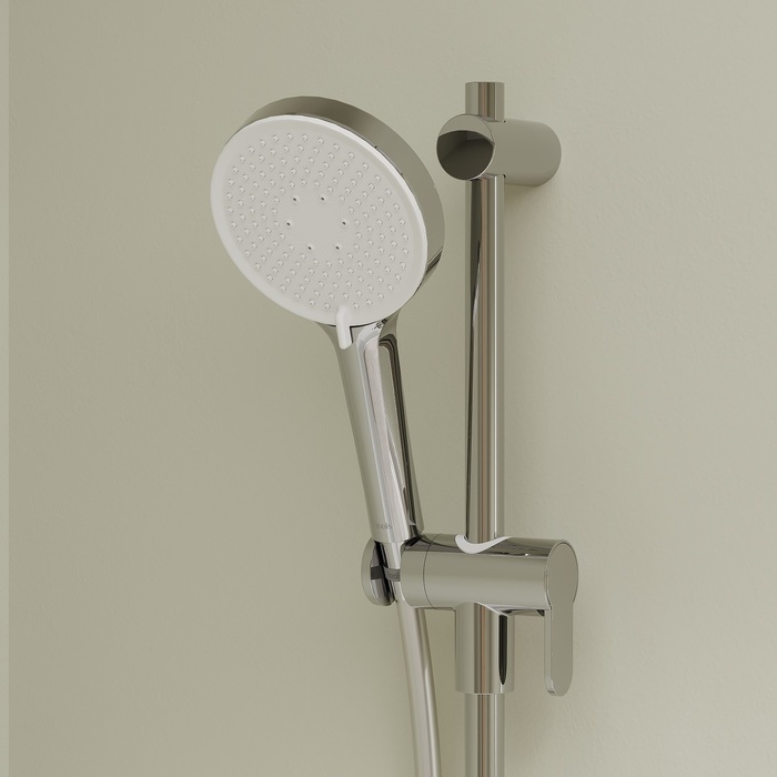 Хромированное покрытие устойчиво к коррозии, появлению сколов и потускнению (при должном уходе). На протяжении многих лет она будет выглядеть как новая. Лейка проста в уходе: мягкие силиконовые форсунки легко очищаются от загрязнений и известкового налета – достаточно провести по ним пальцем.