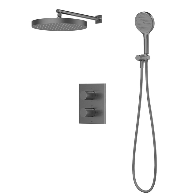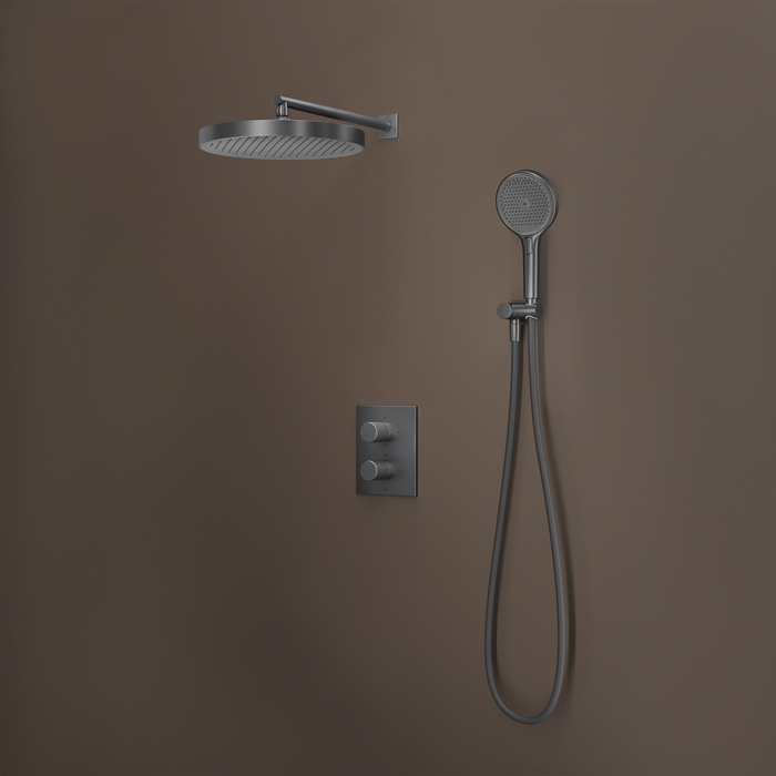 Встраиваемая душевая система с термостатом, тропическим и ручным душем Duna – воплощение актуальных трендов в дизайне смесителей в безупречном исполнении: фрезеровка, модные цвета и фактуры. Ручка выполнена из латуни для сохранения чёткости линий фрезеровки. Европейские комплектующие и технологии — для премиального качества.