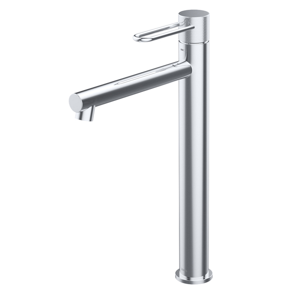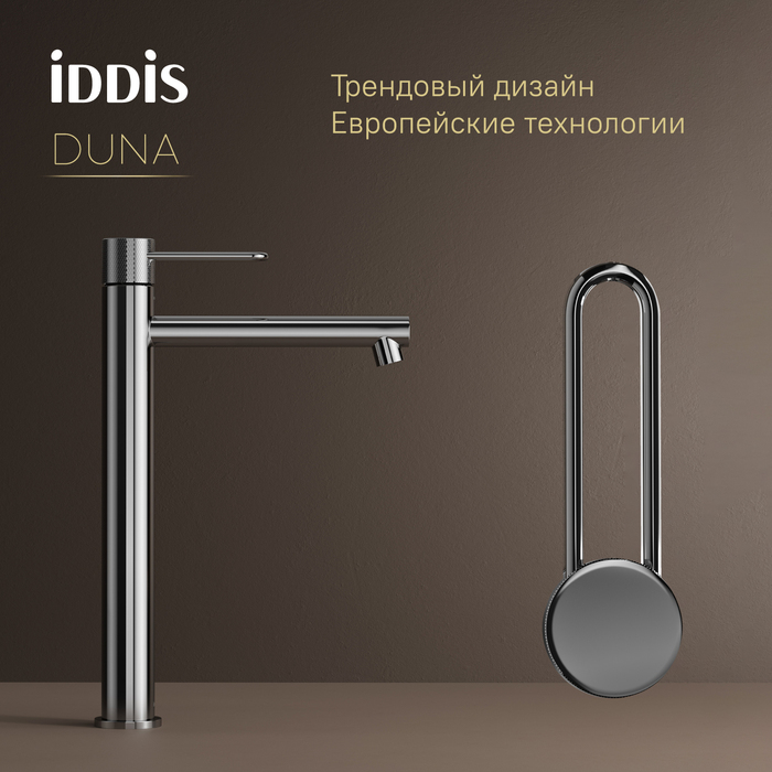 Смеситель для настольного умывальника Duna – воплощение актуальных трендов в дизайне смесителей в безупречном исполнении: фрезеровка, изысканная ручка-петля, модные цвета и фактуры. Ручка выполнена из латуни для сохранения чёткости линий фрезеровки.