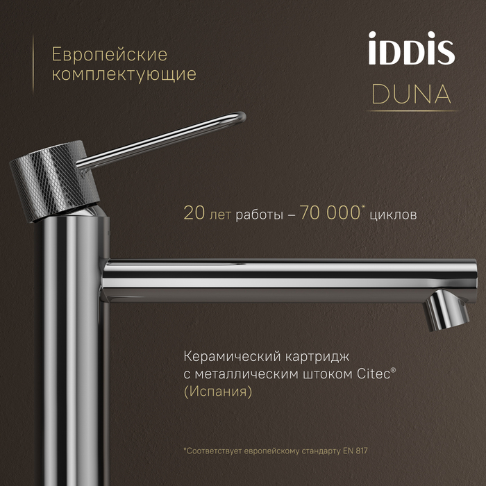 Европейские комплектующие и технологии — для премиального качества. Скрытый аэратор Neoperl (Швейцария) не нарушает дизайн, формирует ровный поток и снижает расход воды. Ключ для обслуживания в комплекте. Керамический картридж с металлическим штоком Сitec® (Испания) обеспечивает долговечность, точность регулировки и плавный ход ручки. Гибкая подводка Tucai (Испания): безопасна для здоровья благодаря шлангу из нетоксичного материала PEX с антибактериальным эффектом, нейлоновая оплетка для защиты от коррозии и износа, увеличенная длина 50 см упрощает монтаж.