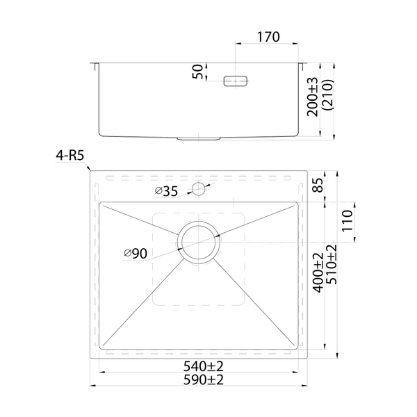 - подходит для врезного монтажа, подстольный монтаж не предусмотрен; вырез под мойку составляет 570х490 мм